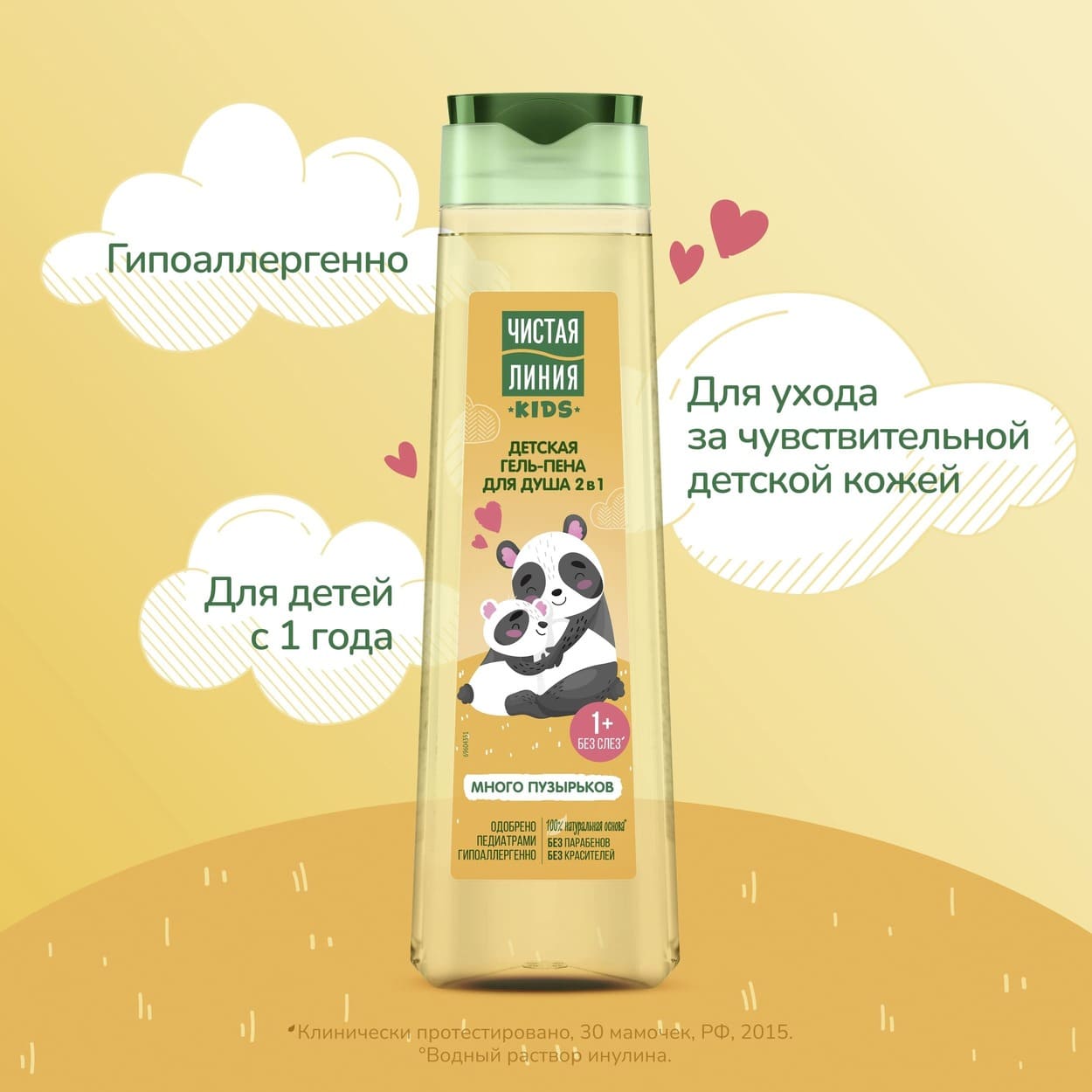 Детская Гель-пена для душа 2 В 1 Много пузырьков без красителей и парабенов, с ромашкой и пантенолом 400 мл